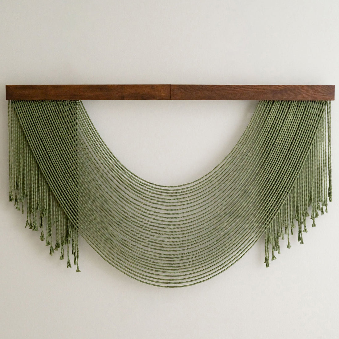 Green Arc Fiber Wall Art Macrame for Boho and Minimalist Wall Spaces V16