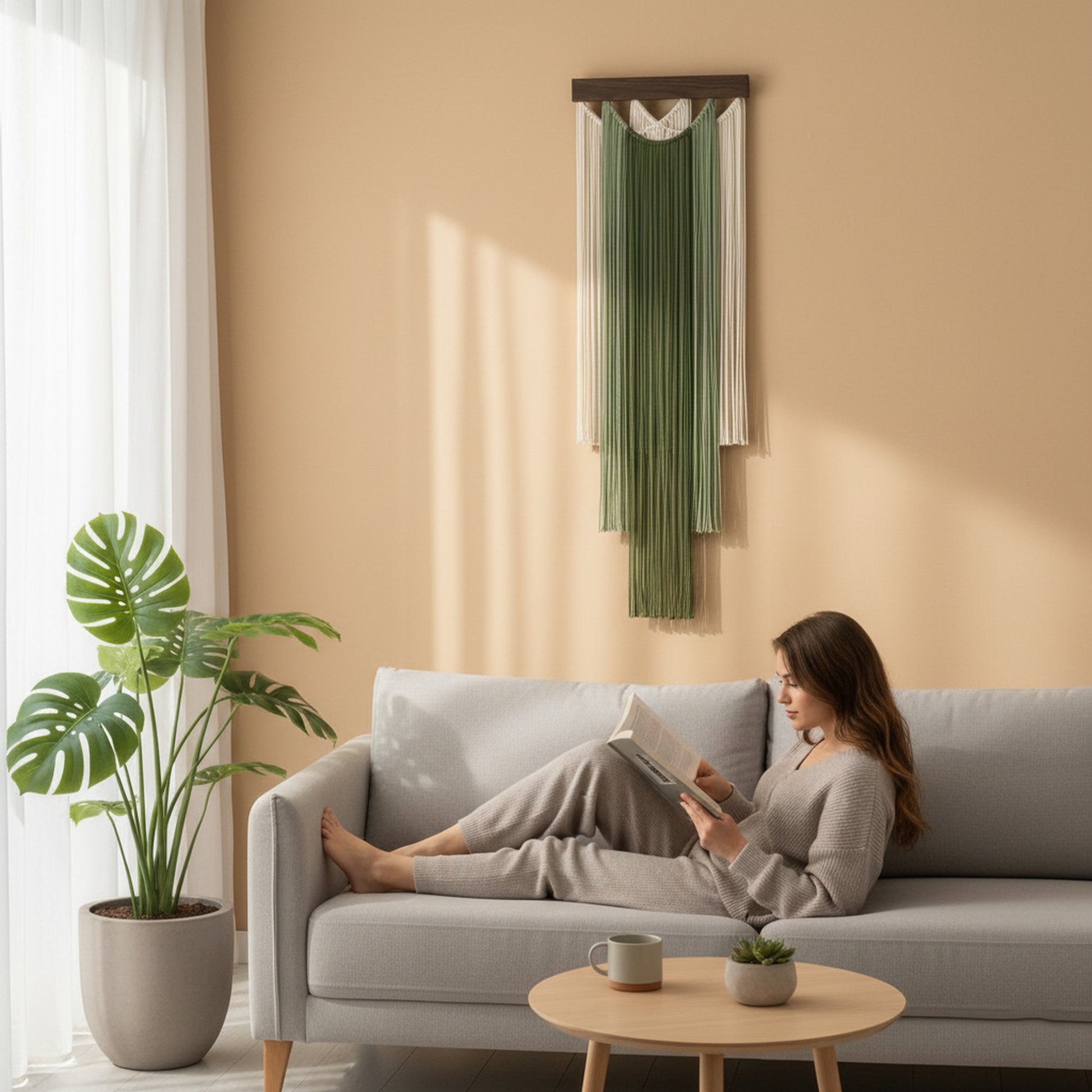 Falling Star Wall Hanging – Cotton Macrame Art for Boho Decor V92