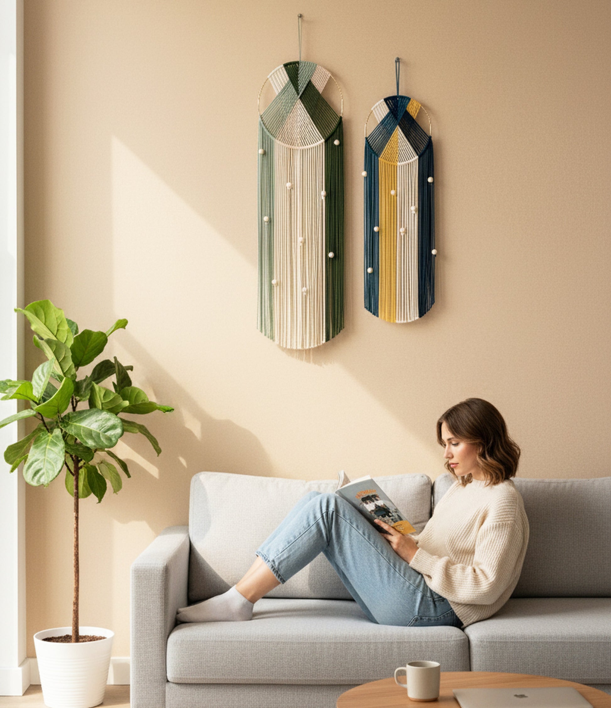 Designed for minimalist, farmhouse, or eclectic interiors, it suits any space from bedrooms to hallways. It also makes a thoughtful gift for birthdays, housewarmings, or holidays. Whether you're into macrame hanging wall art or looking for a large wall hanging macrame for vertical impact, this macrame wall hanging big piece blends charm, craftsmanship, and calm.