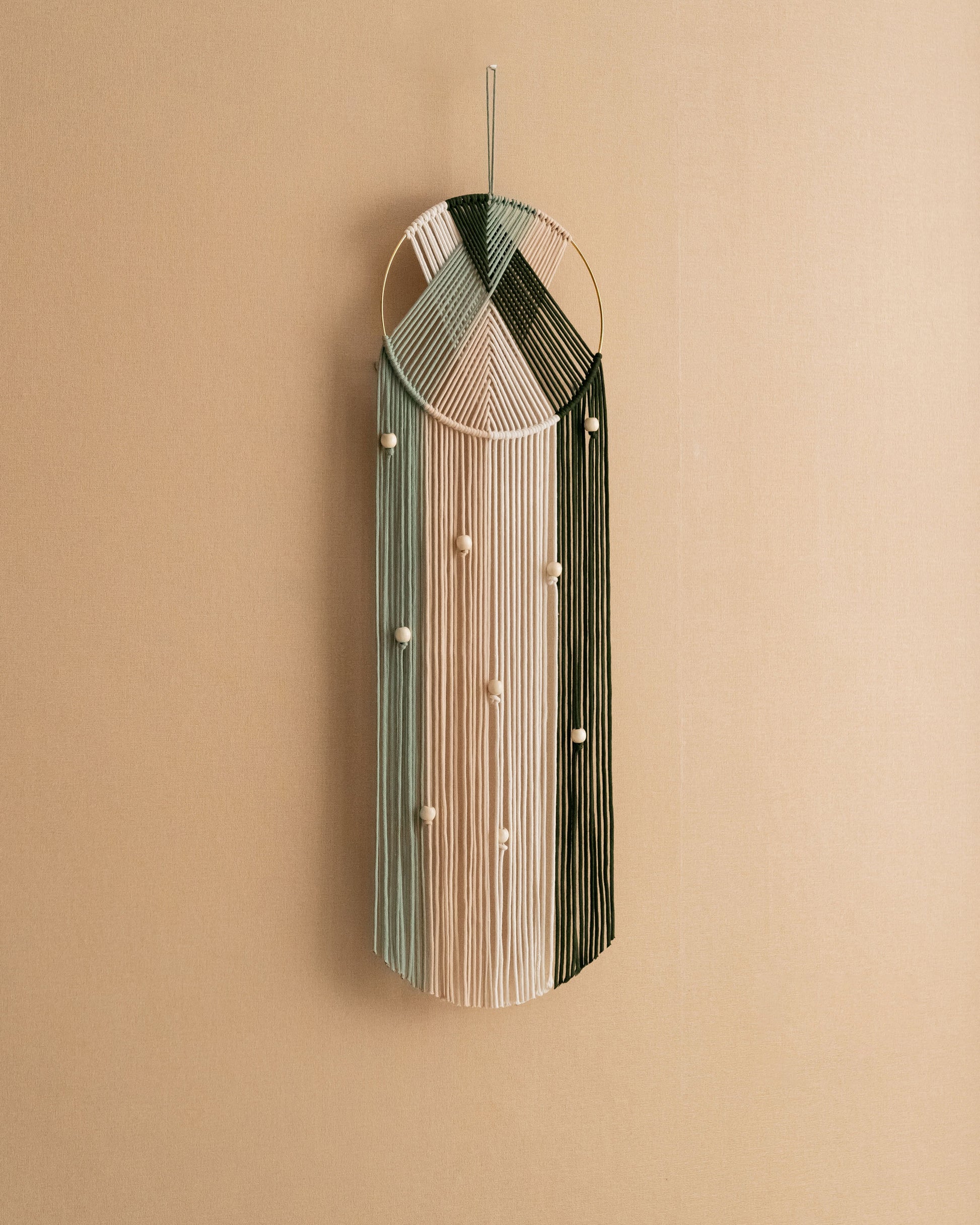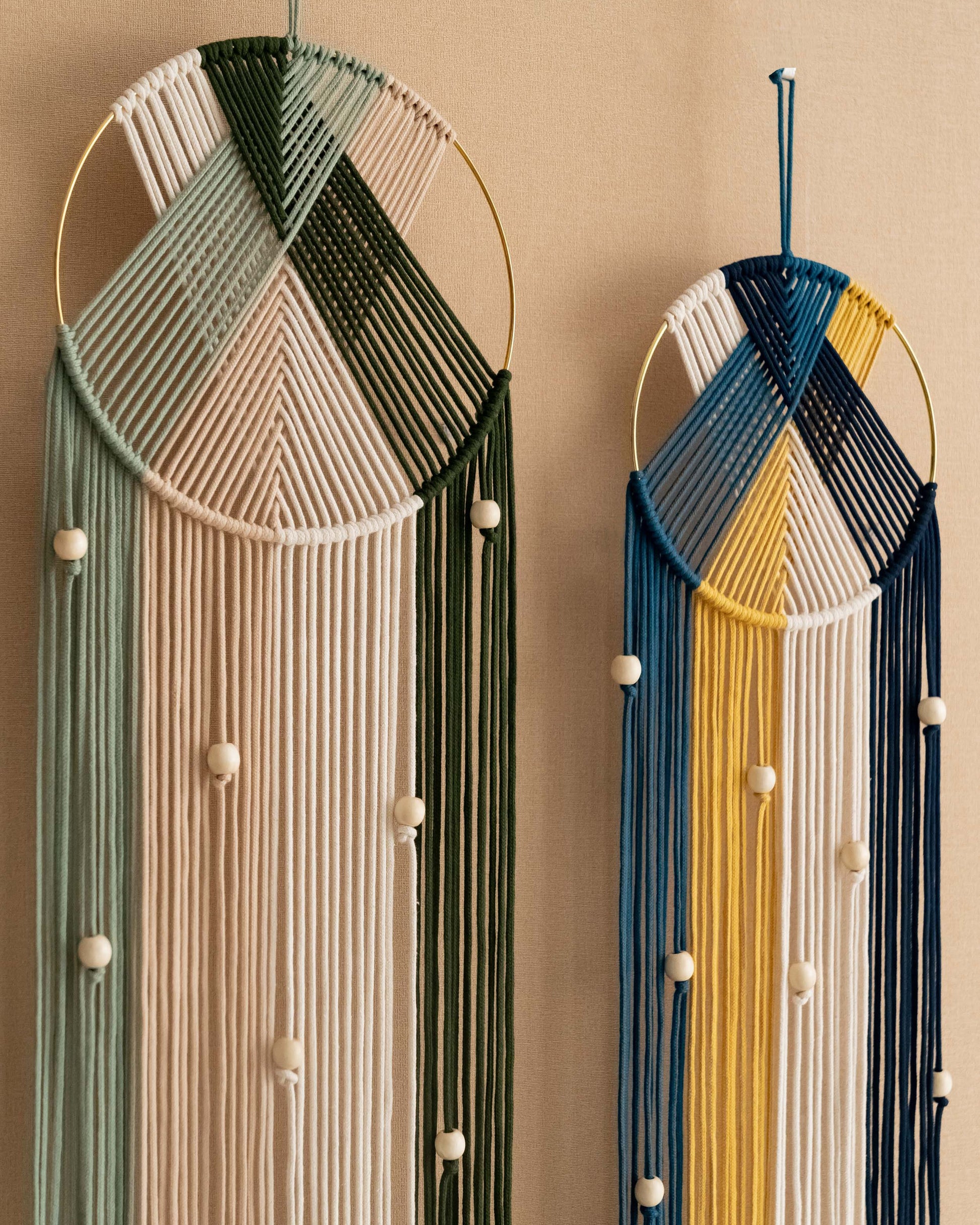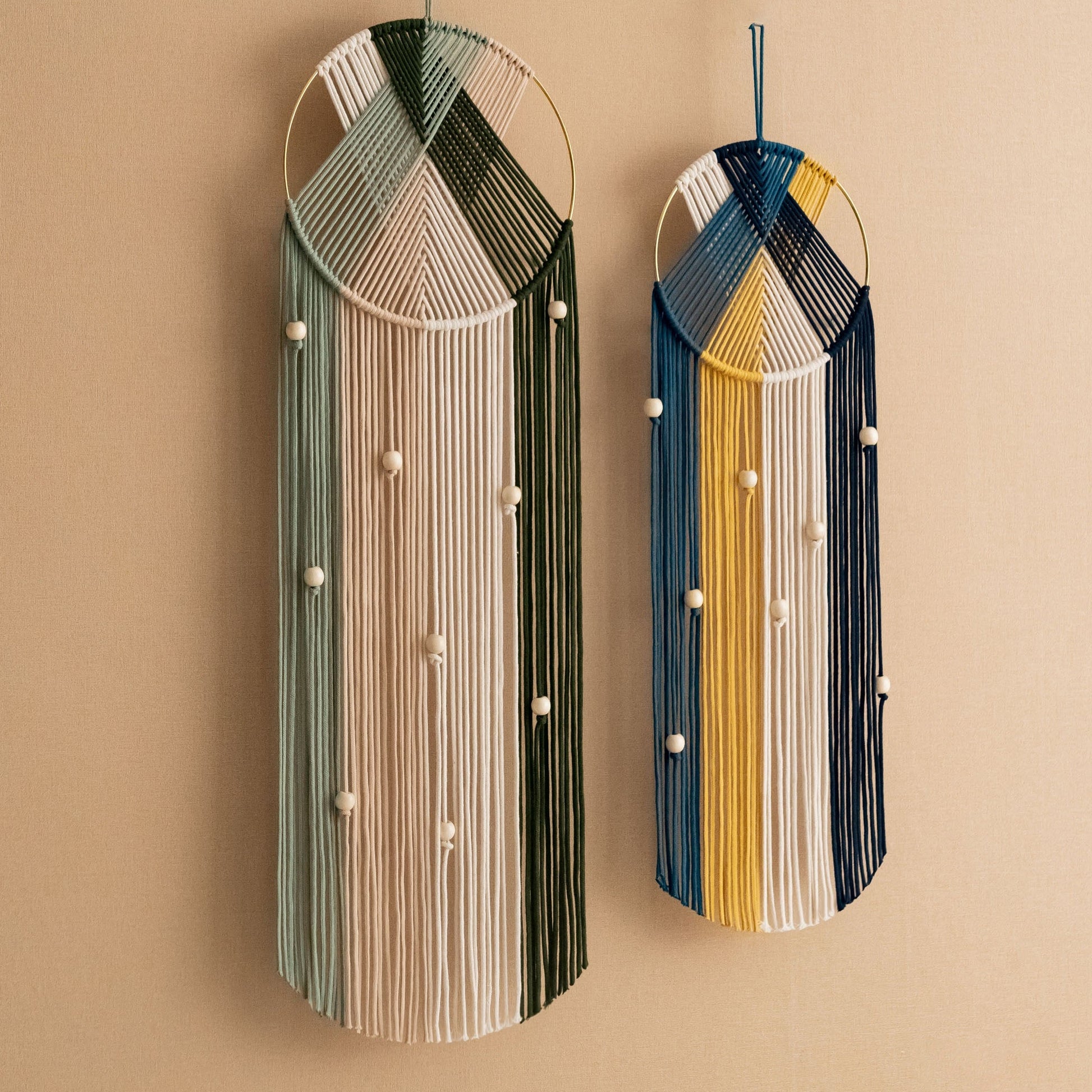 Bring harmony and a soft artistic touch to your home with this Fiber Wall Dreamcatcher – a modern macrame wall hanging crafted from high-quality cotton cord. With its half-circle form and color-blocked tassels, this piece is both trendy and timeless, perfect for fans of bohemian macrame wall hanging.