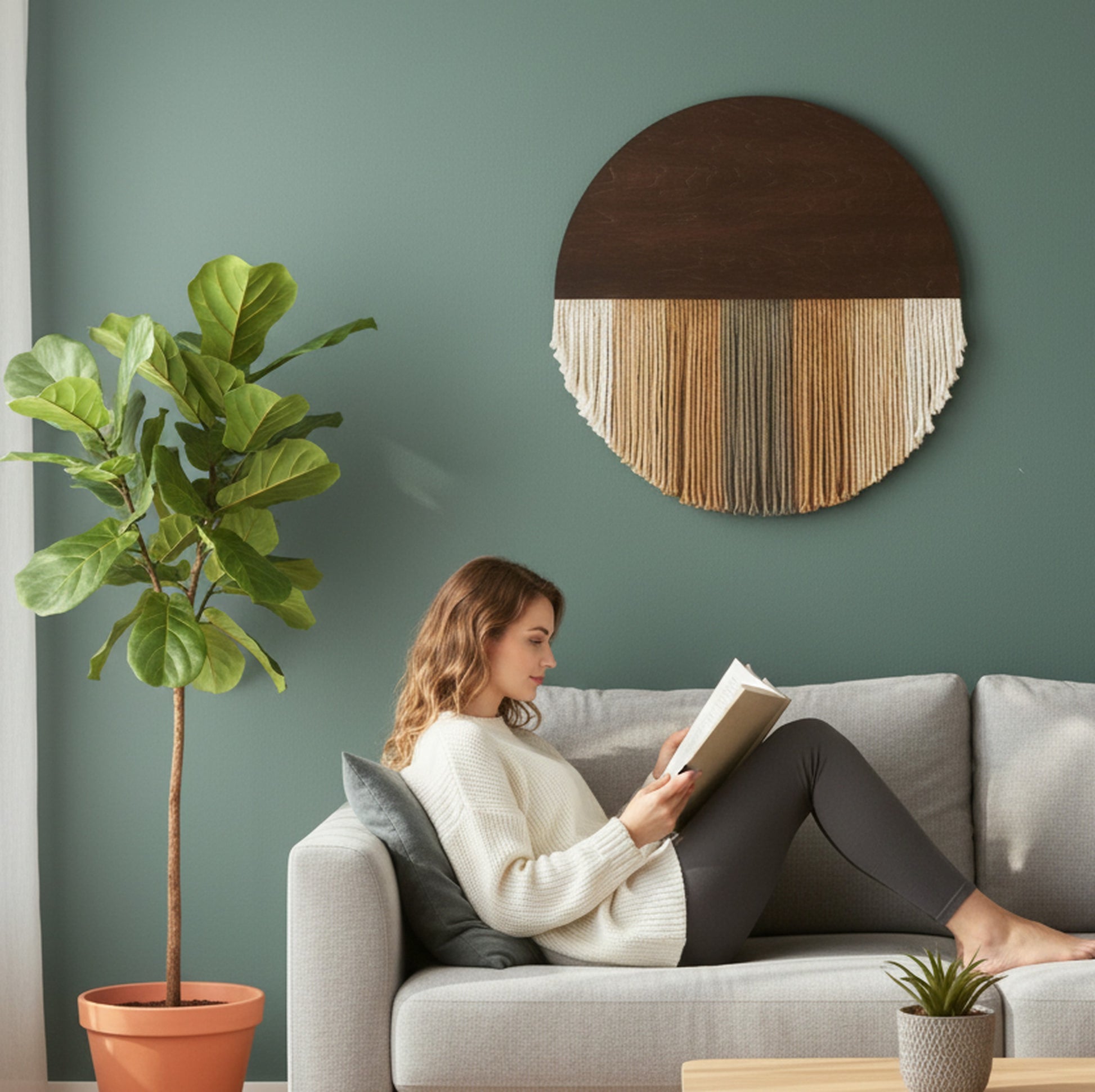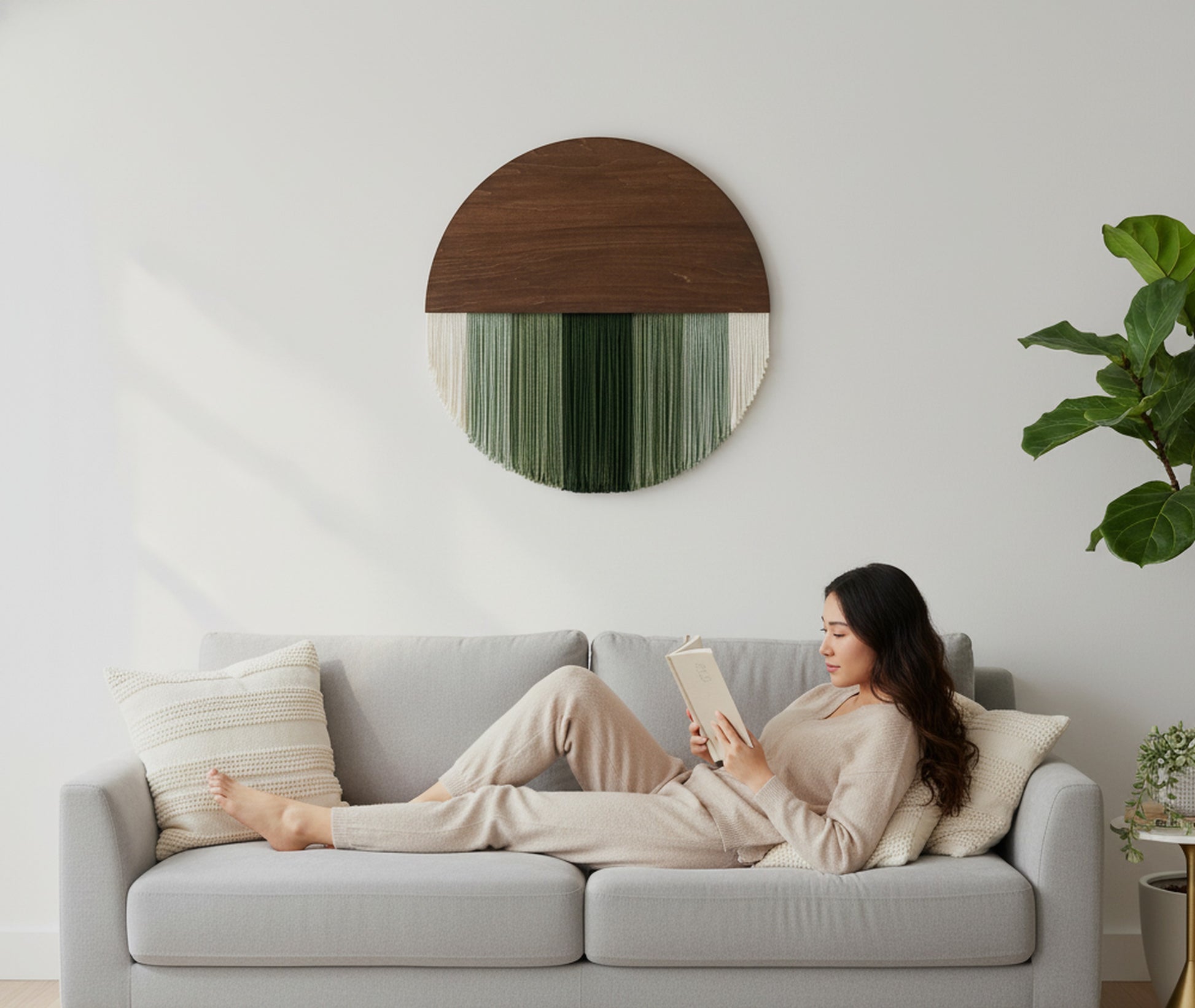 Lunar Memory Wall Hanging – Round Boho Fiber Moon Decor for Home V07