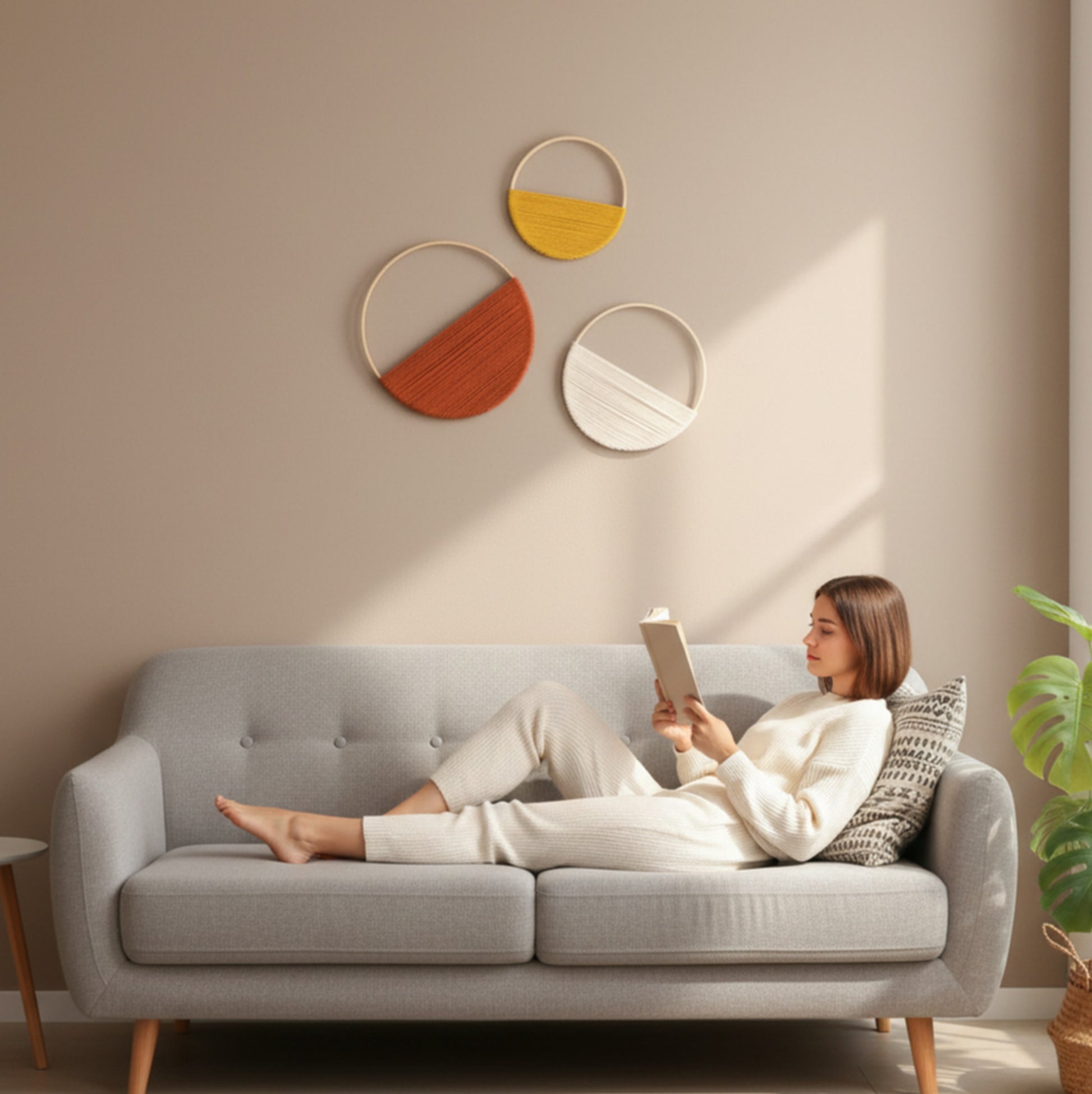 Set Macrame Circle Wall Decor - Boho Minimalist Wrapped Ring Art W23