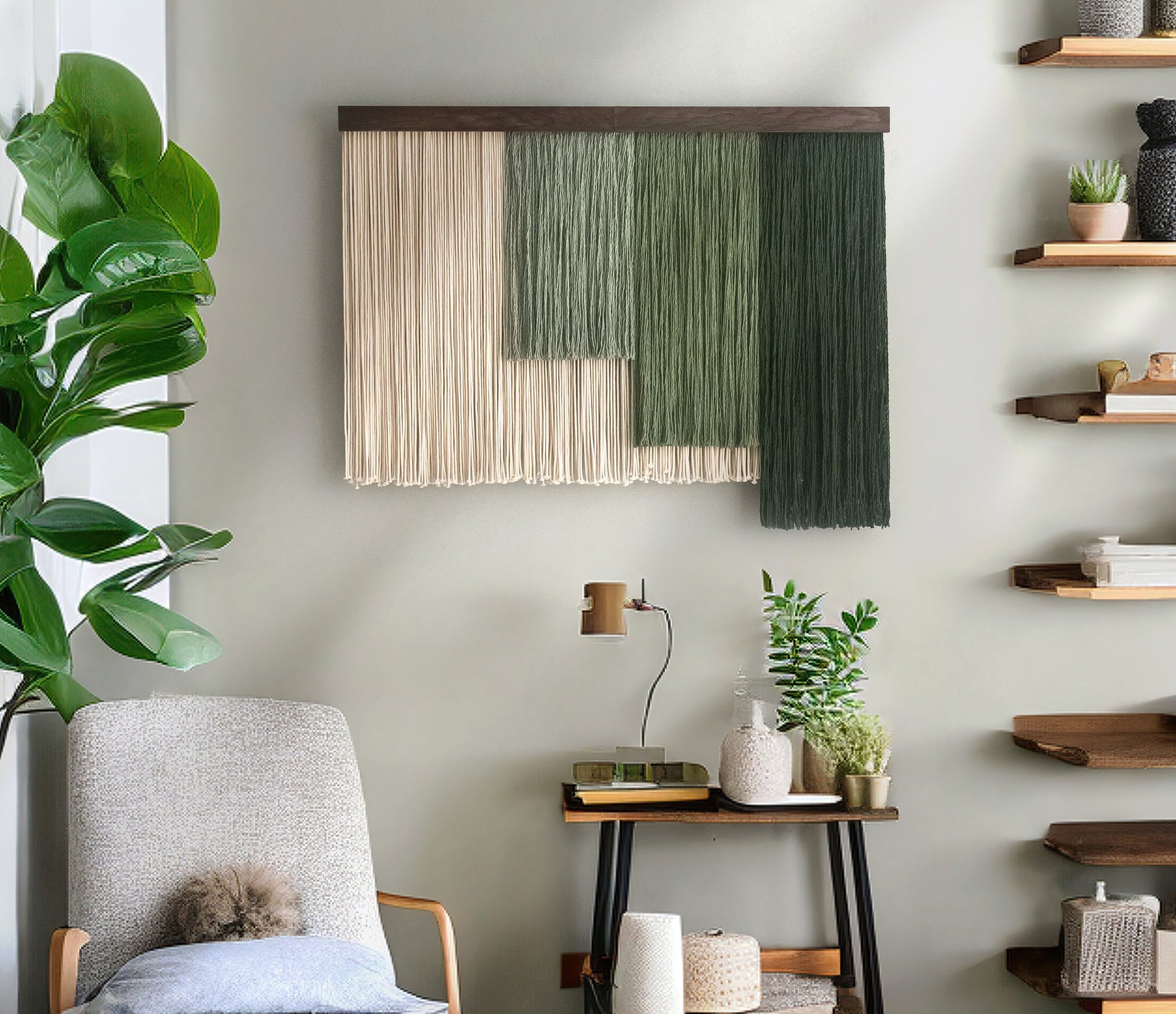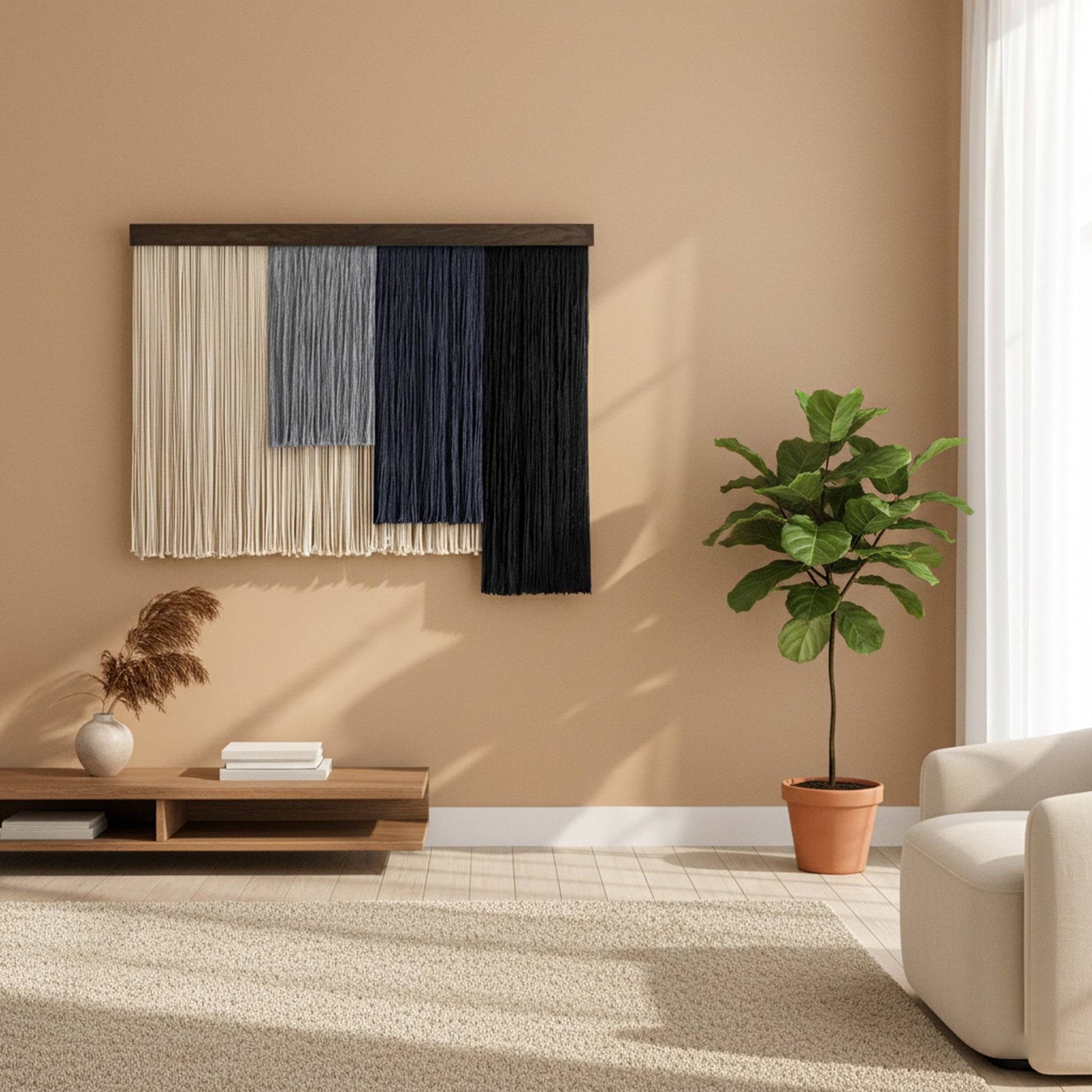 Bring serenity and texture into your living space with our Shades of Zen Wall Hanging, a peaceful macrame wall hanging made from soft cotton cord and natural wood. This large macrame wall hanging features a soothing gradient of earthy tones, creating a calming focal point in any room.