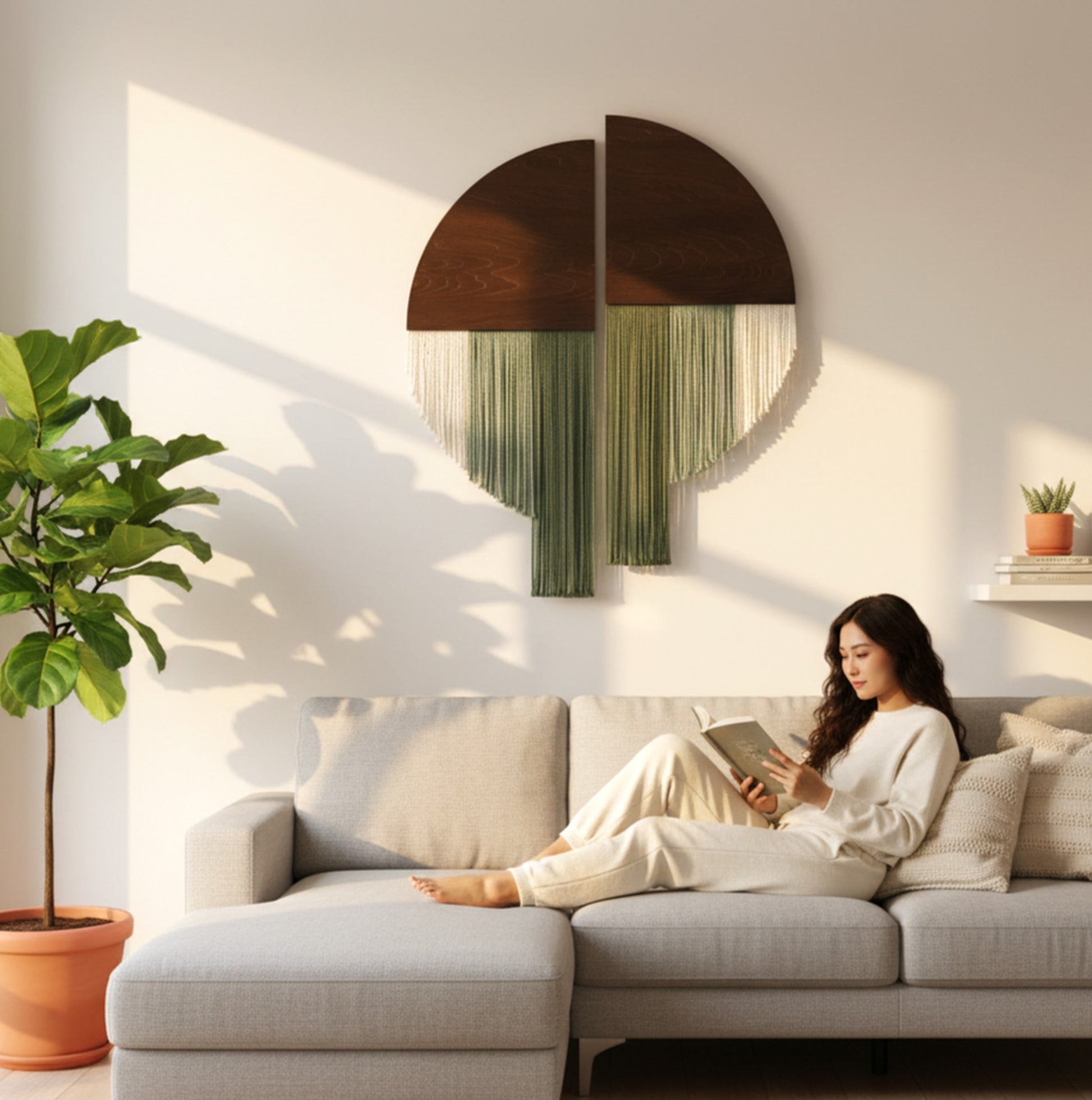 Soulmate Macrame Wall Hanging - Duo Half-Circle Decor V65