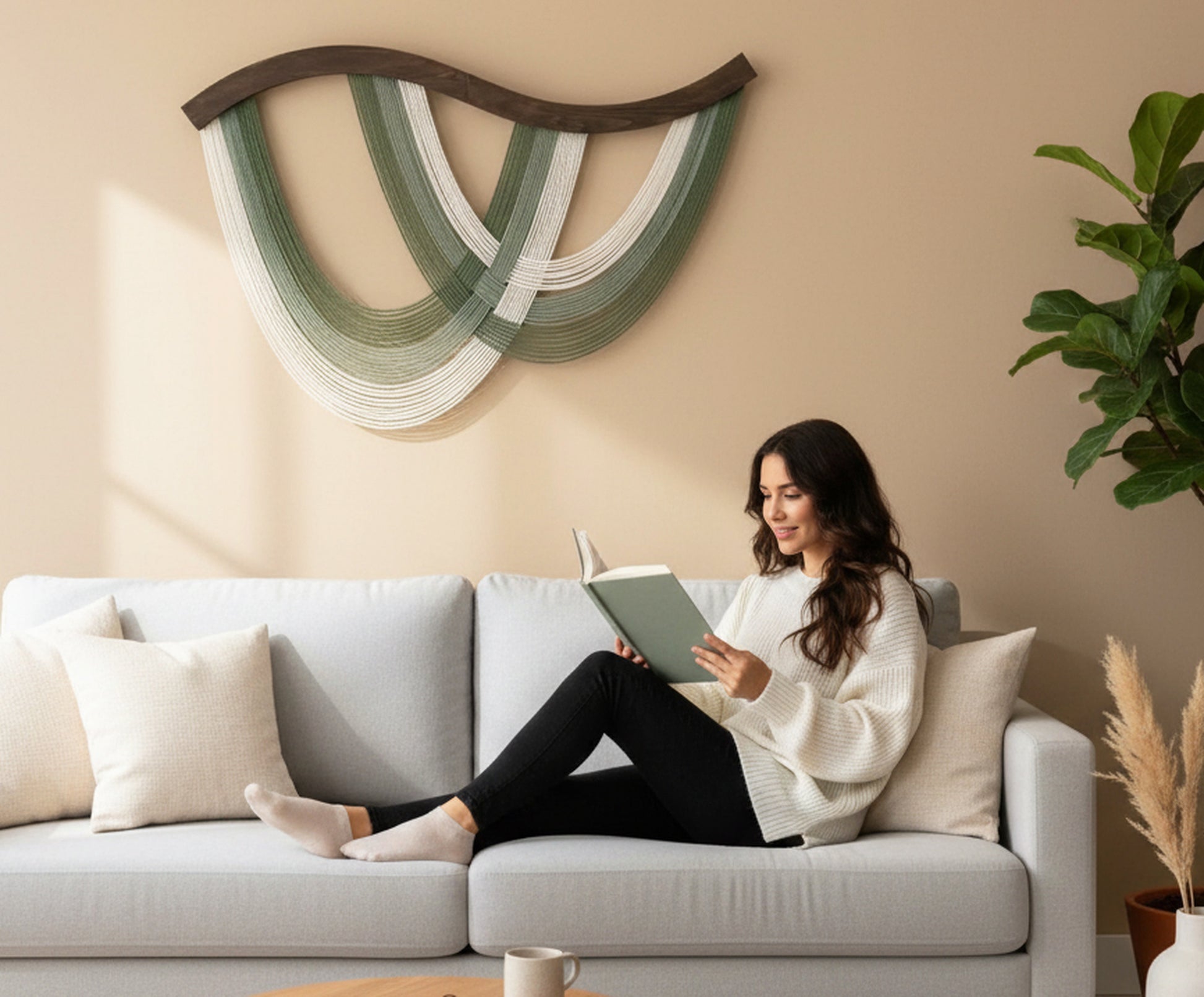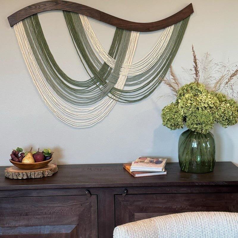 Each Curved Fiber Wall Decor is carefully knotted to maintain its clean structure and fluid movement. Its wide design makes it a striking large macrame wall hanging, ideal for modern, bohemian, or farmhouse interiors.
