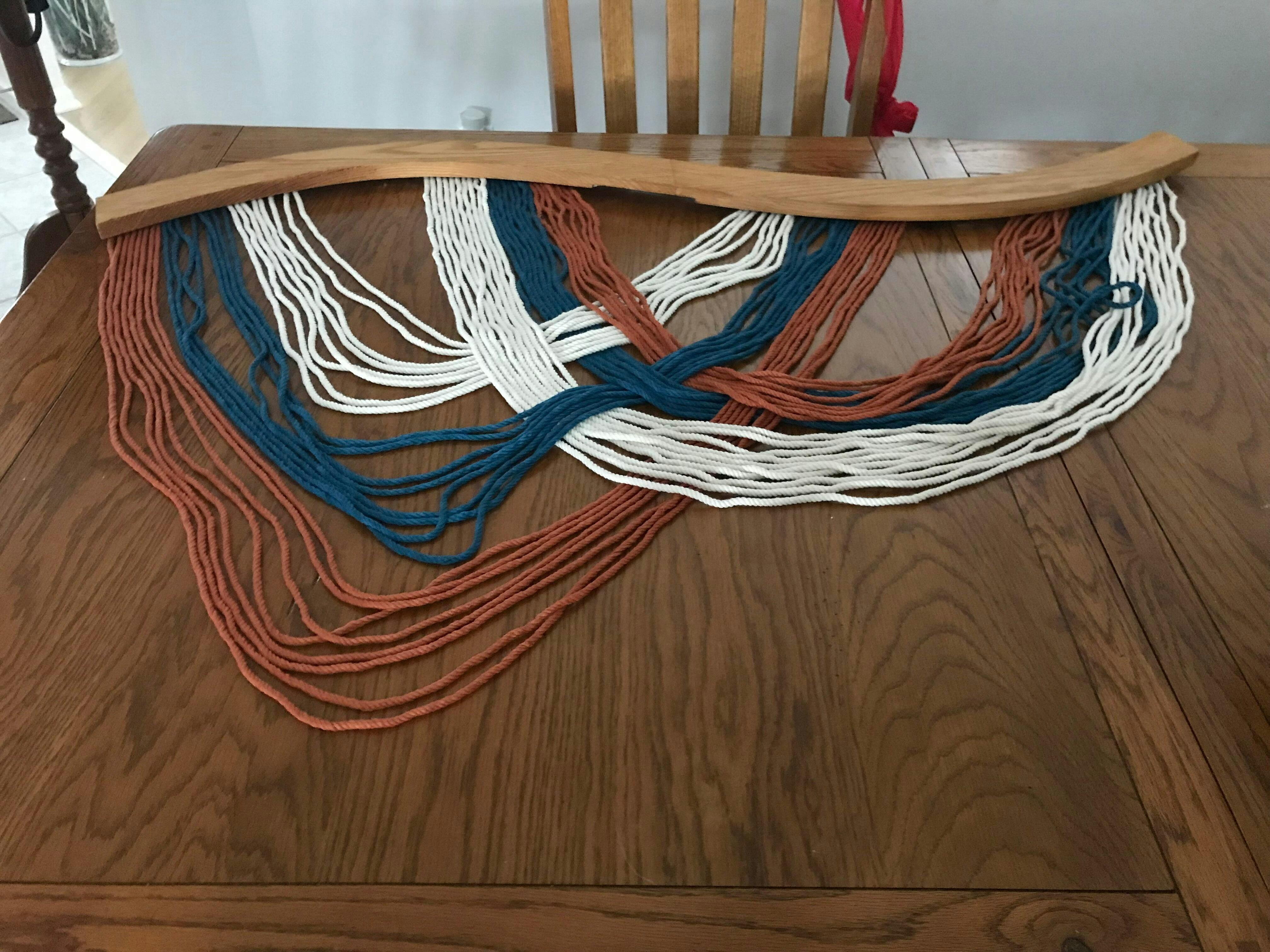 This Macrame Fiber Wall Hanging is 100% handmade with Macrame Cord and Natural Wood.