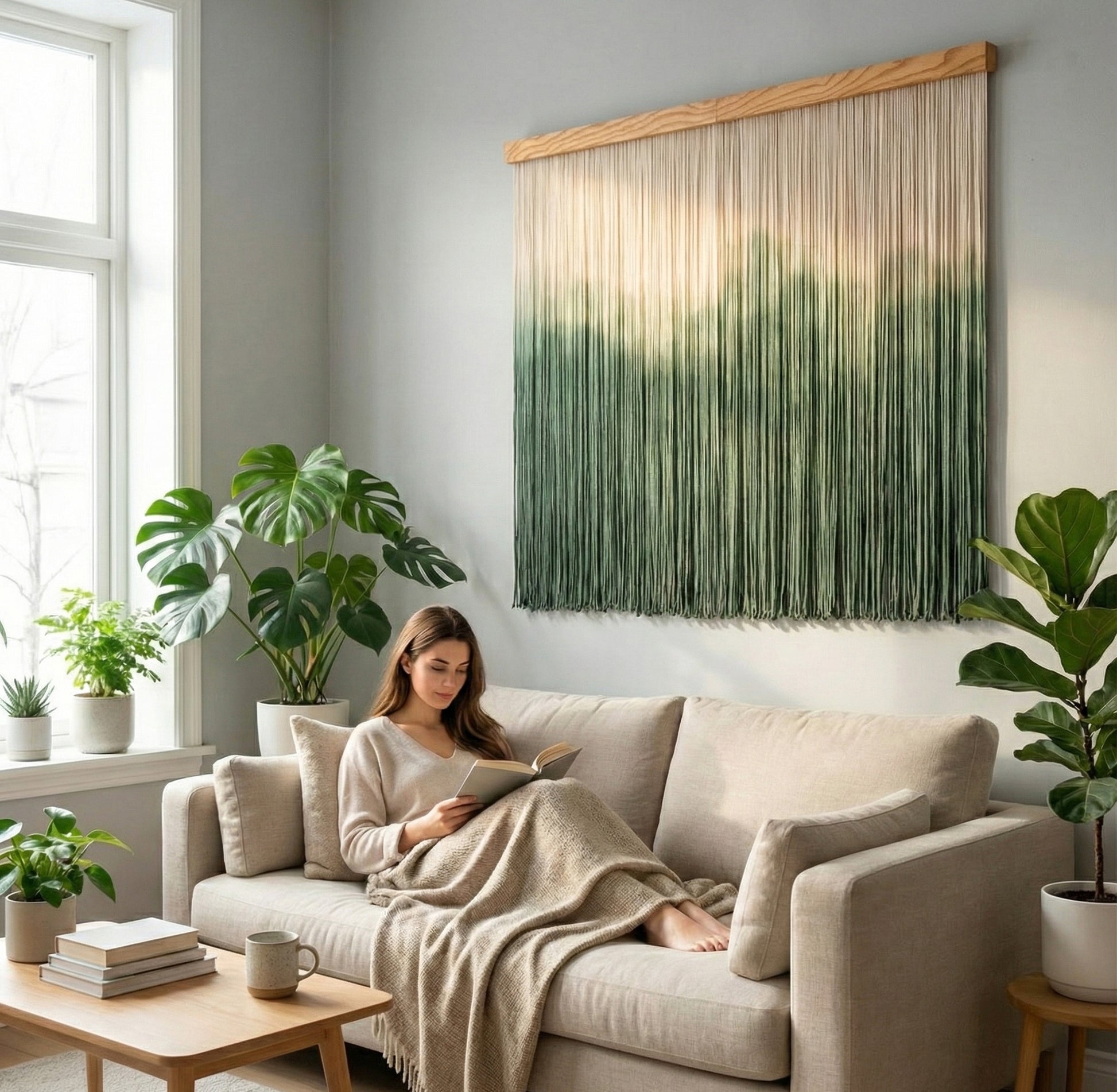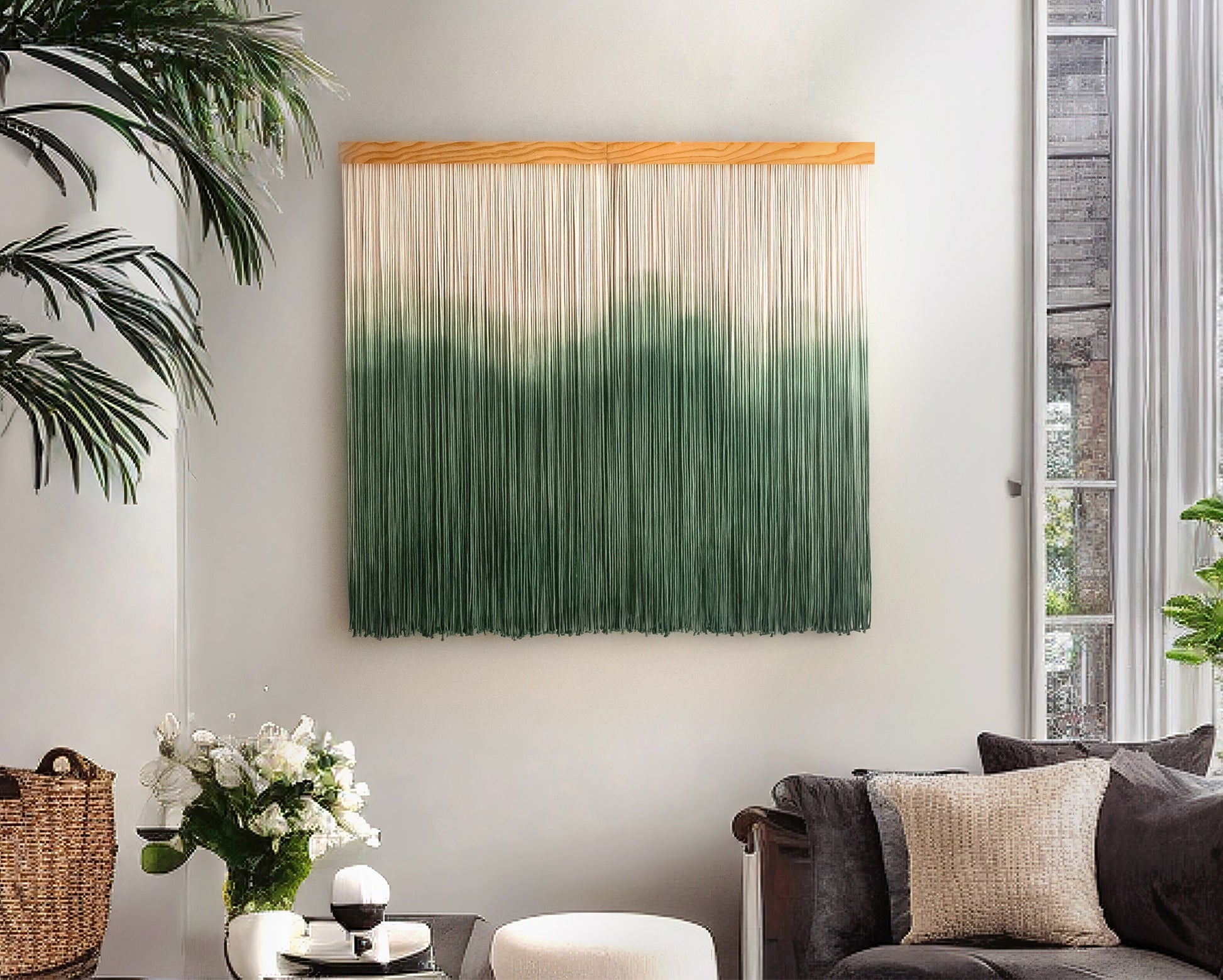 Transform any room into a peaceful retreat with The Forest macrame wall hanging created to add depth and texture to a blank wall while bringing a calm and natural feeling to your living space. Its soft gradient and handcrafted macrame design make it a beautiful choice for rustic wall decor, home wall decor or above bed wall decor because it introduces gentle movement and a soothing forest inspired atmosphere.