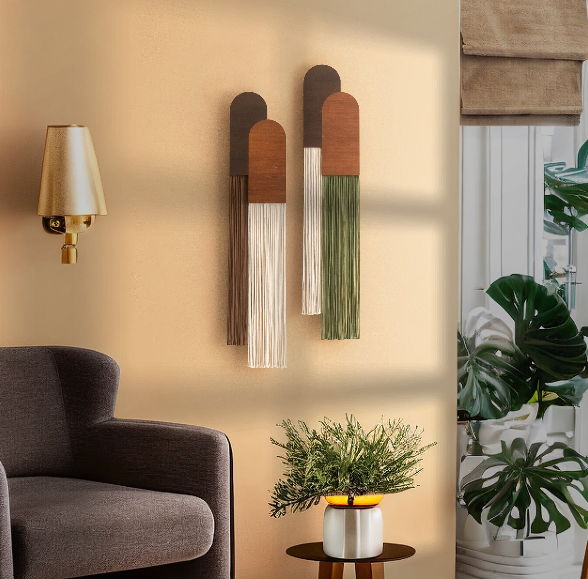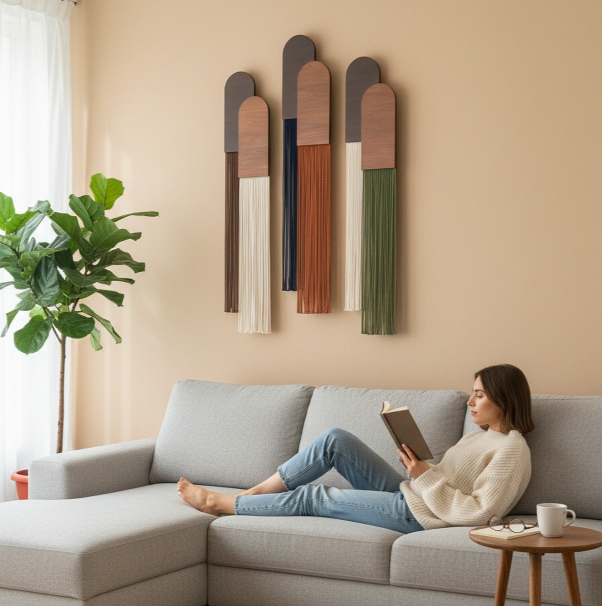 Meet the Together Macrame Wall Hanging – a bold, geometric fiber artwork that combines warm natural wood with flowing cotton cord. Designed to evoke harmony and companionship, this piece is a statement of unity, perfect for those who love minimalist macrame decor and warm, earthy interiors.
